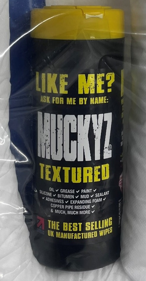 - Includes a tub ( 100 wipes ) of Muckyz textued wipes
